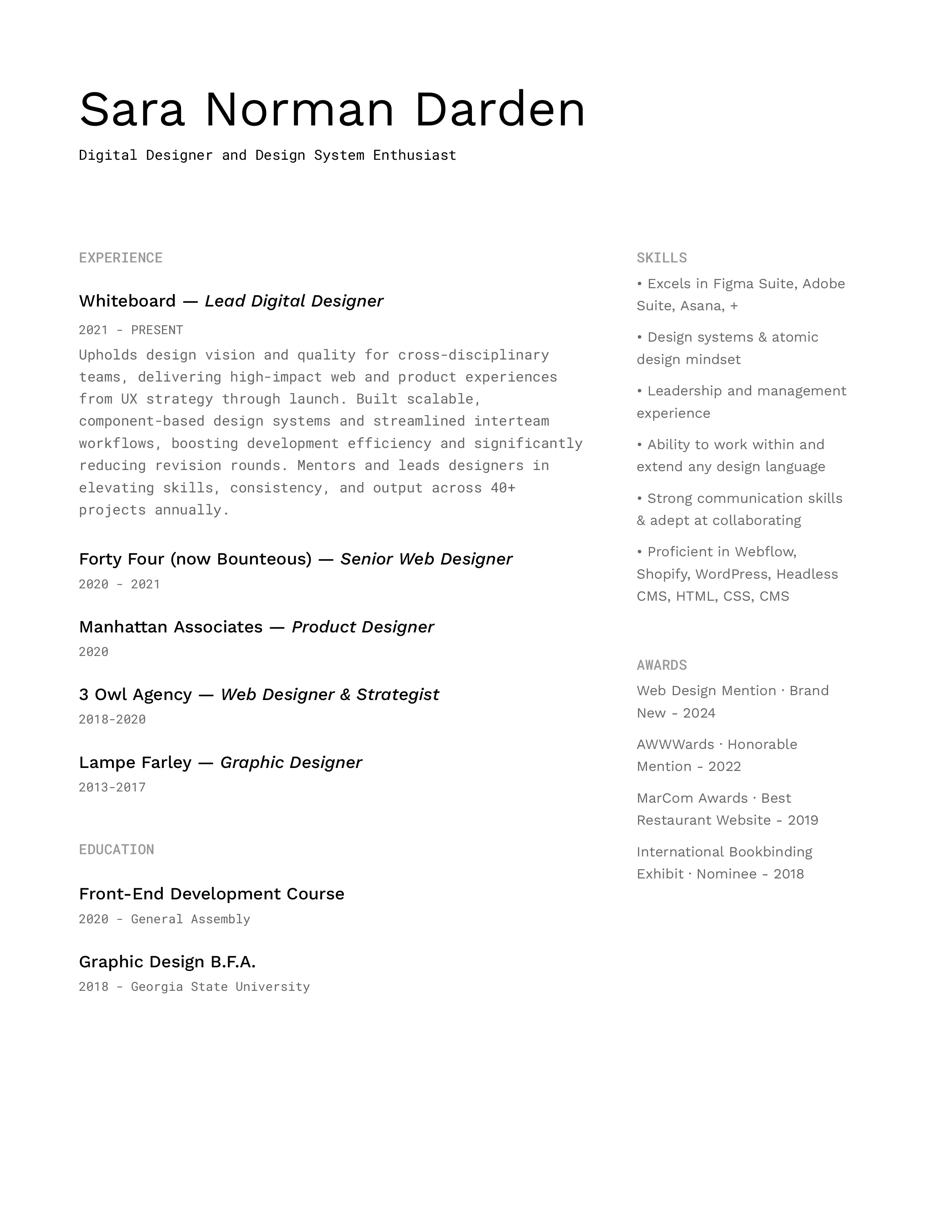 Lead Digital Designer at Whiteboard (2021-now)